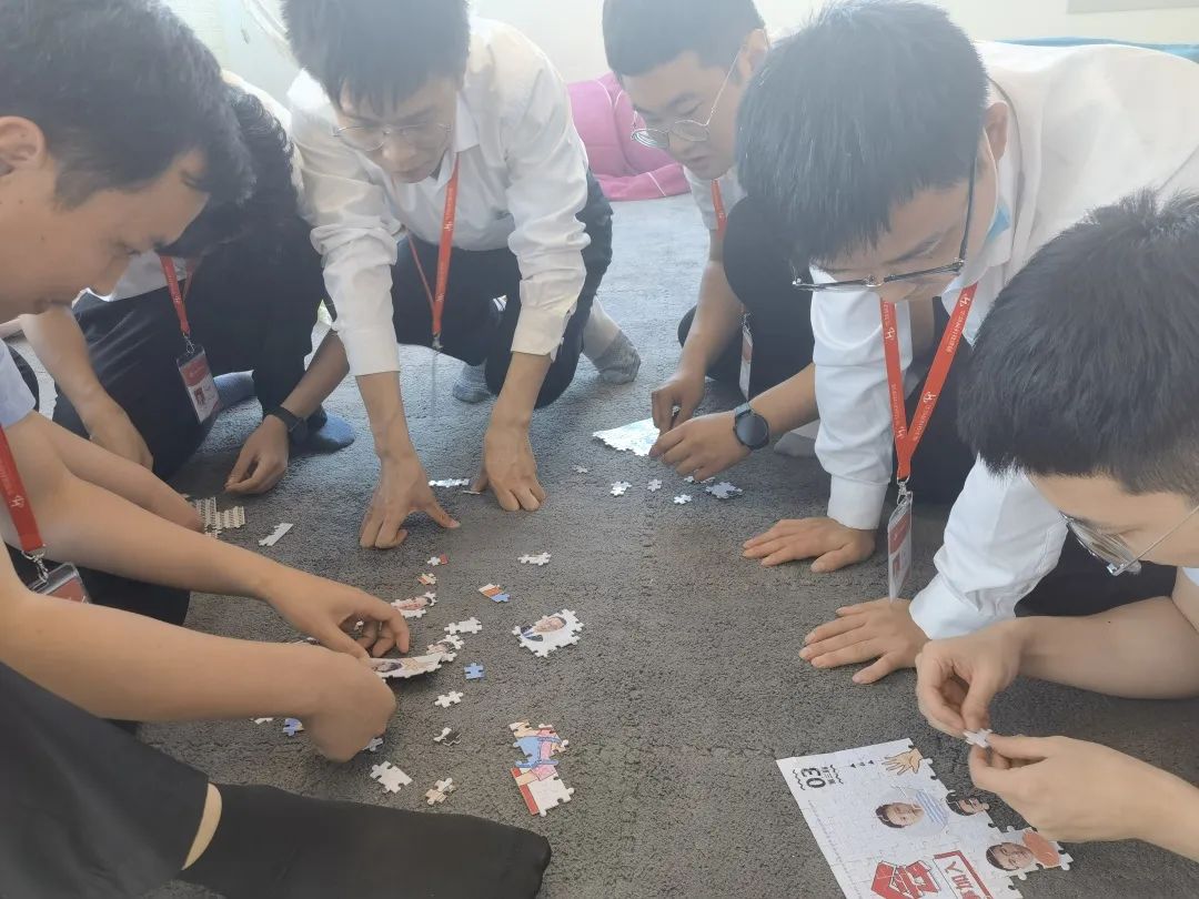 创意拼图游戏中,大家密切配合、通力协作,有人分类筛选、有人拼图,忙得不亦乐乎,最终仅耗时15分钟便将数量高达300片的拼图拼接完成,既考验了大家动手动脑能力,也提升了团队凝聚力。